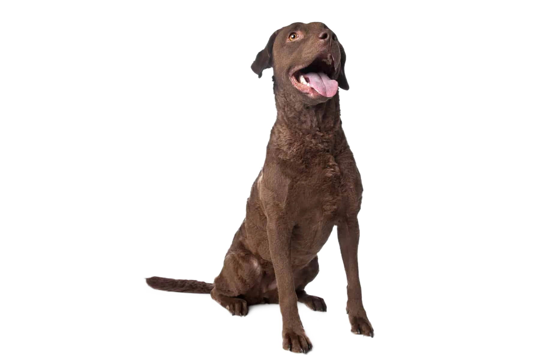 The Chesapeake Bay Retriever originates from the United States and has its roots in the region around the Chesapeake Bay, from which it takes its name. Its history began with the crossing of various working dogs known for their exceptional abilities in waterfowl hunting. The breed was particularly valued for its resilience in icy water and harsh weather, making it an indispensable companion for hunters and fishermen. Through selective breeding, a dog emerged with a dense, water-repellent coat, a strong retrieving instinct, and remarkable endurance. Over time, the Chesapeake Bay Retriever developed into a versatile hunting and family dog that is still valued today for its intelligence and work ethic.