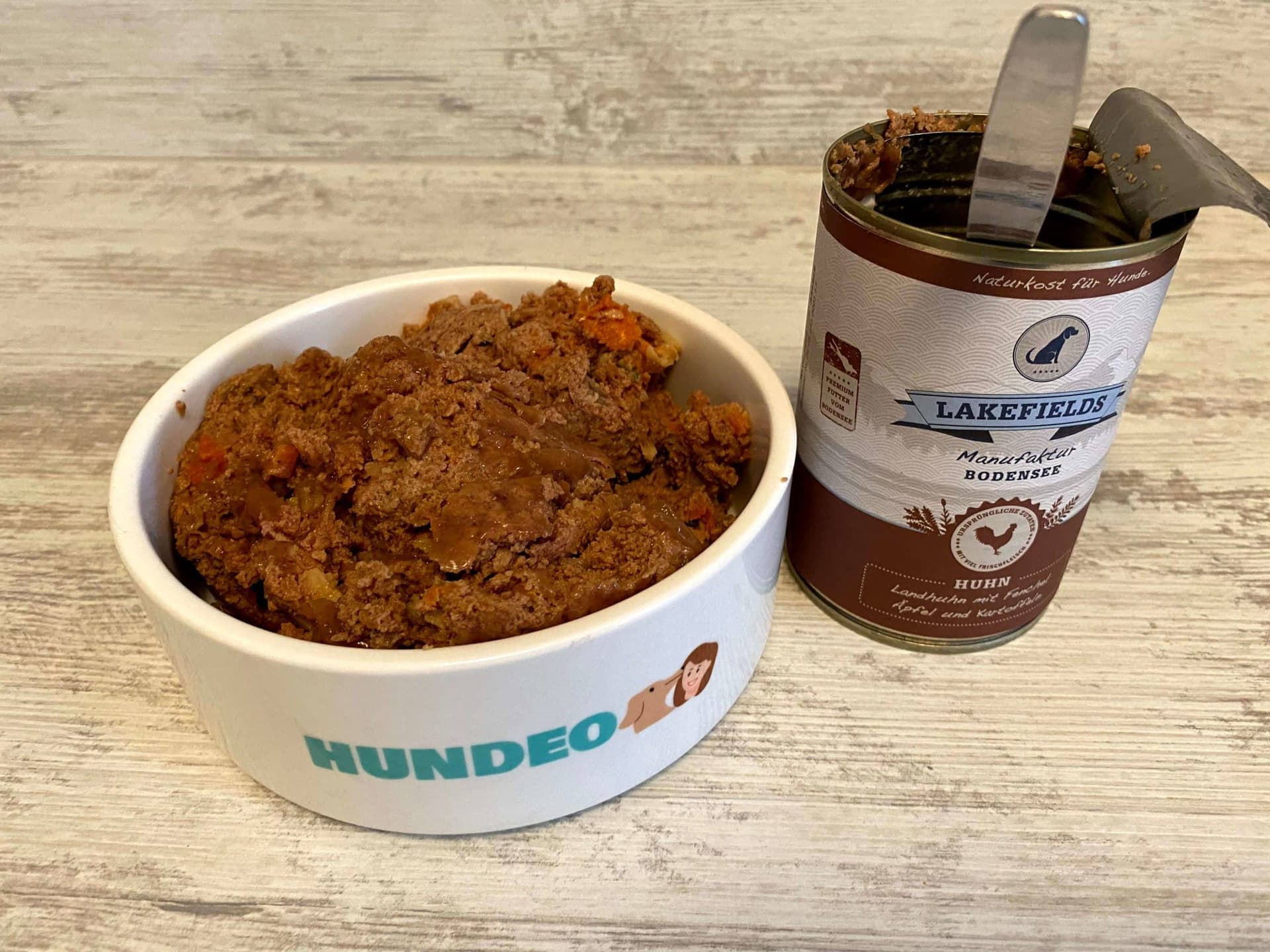 Lakefields entstand 2015, weil ein Labrador mit chronischen Bauchschmerzen kein handelsübliches Futter vertrug: also begann der Besitzer selbst zu kochen. Heute produziert die Manufaktur in Gottmadingen am Bodensee und deklariert 100 % der Zutaten mit Prozentangaben. In diesem Test: zwei Produkte, Nass- und Trockenfutter.