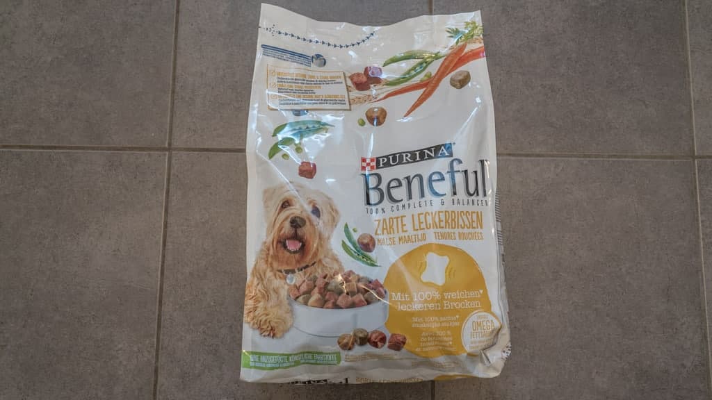 Neben den getesteten Trockenfutter-Varianten bietet Purina Beneful mit der „Frisch & Saftig"-Linie auch Nassfutter an (Beutel mit Stückchen in Sauce). Dieses Nassfutter wurde von uns nicht getestet und ist daher nicht in die Bewertung eingeflossen.